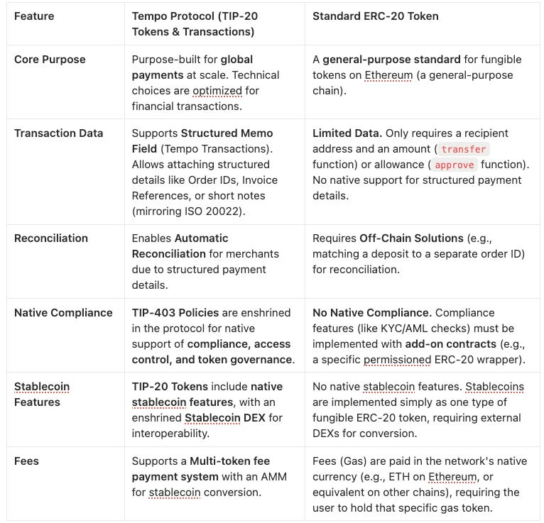 The Tempo protocol is designed to address the limitations of standard blockchain tokens like ERC-20, particularly in the context of global payments.